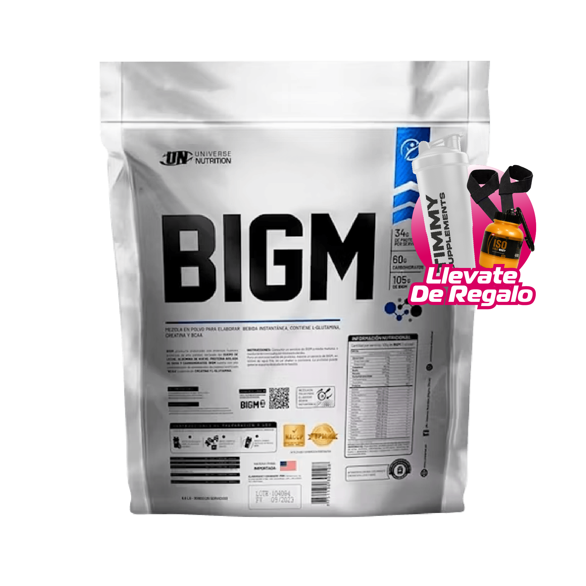 BIGM producto elaborado con diversas fuentes proteicas de alta calidad derivado del SUERO DE LECHE ALBÚMINA DE HUEVO PROTEÍNA AISLADA DE SOYA Y CARBOHIDRATOS. BIGM cuenta con una concentración de aminoácidos de cadena ramificada “BCAA” y además de CREATINA Y L-GLUTAMINA. Ideal para personas que deseen mantener o subir su peso (periodo de volumen) tanto para hombres mujeres atletas de alto rendimiento físico entre otros